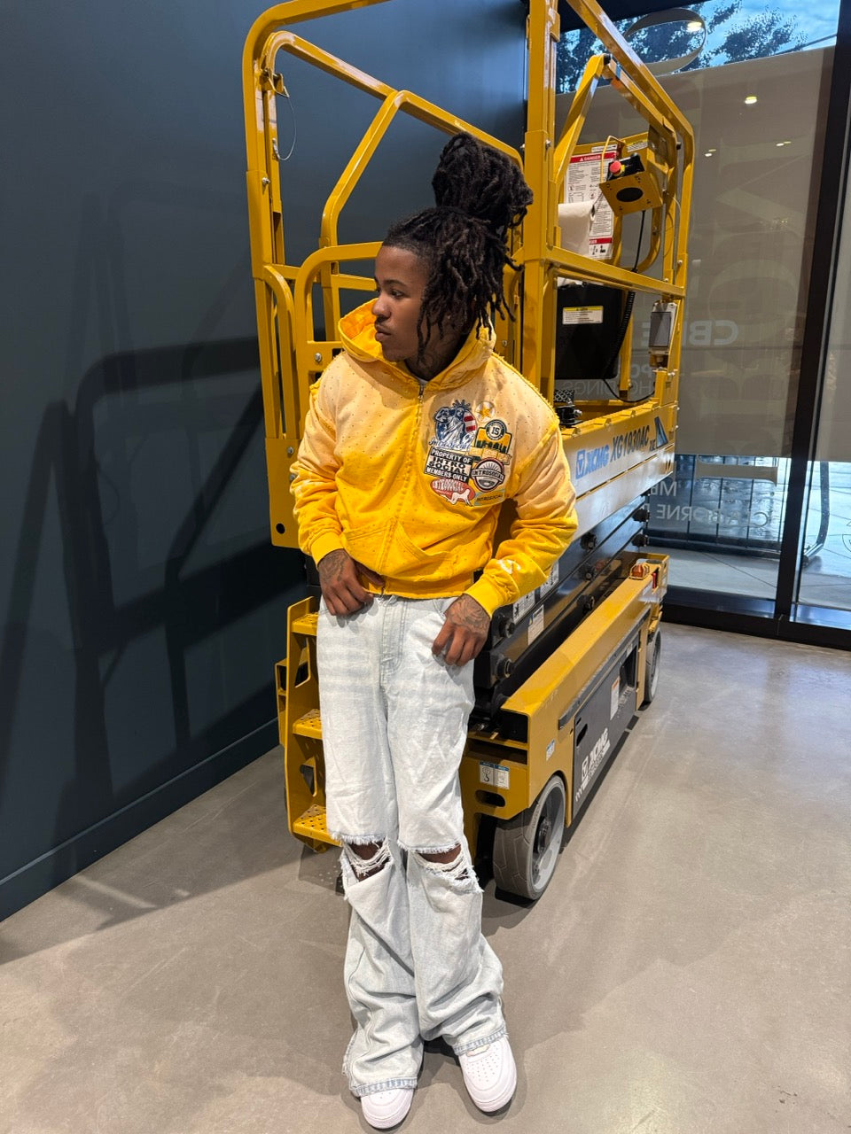 Design: Double-stitched hood, inverted seams, appliqué embroidery